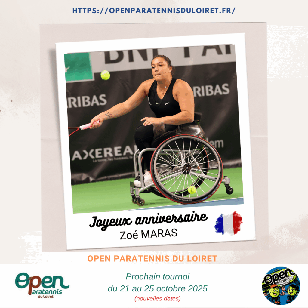 AnniversaireEn cette journée du 11 octobre 2025 l’Open Paratennis du Loiret souhaite un joyeux anniversaire à Zoé MARAS (FRA) 26ème au classement mondial Zoé MARAS est inscrite pour la prochaine[…]