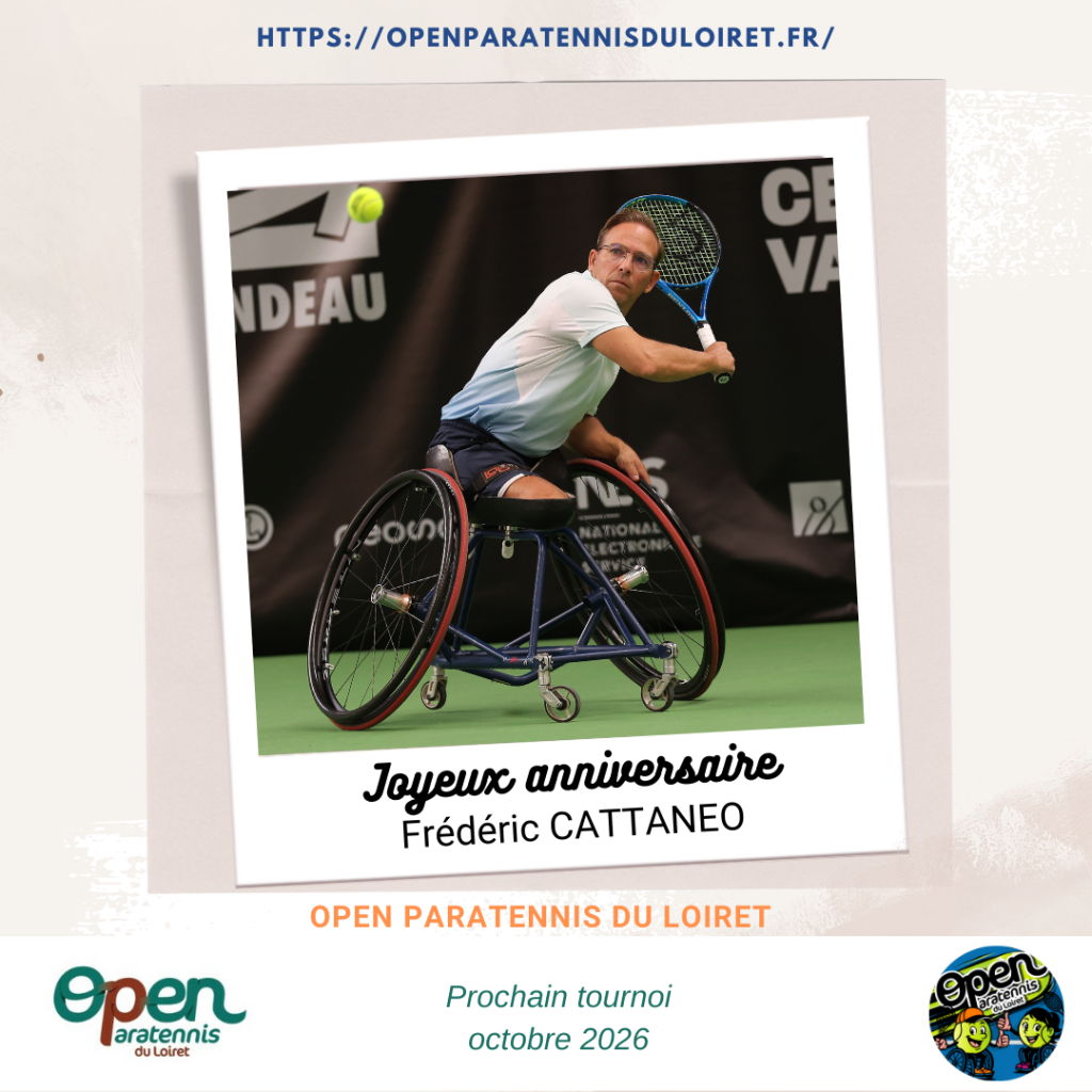 En cette journée du 3 décembre 2025 l’Open Paratennis du Loiret 🎾👨🦽➡️👩🦽souhaite un joyeux anniversaire à Frédéric CATTANEO (FRA) 24ème au classement mondial