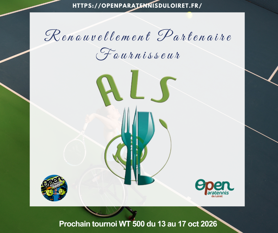 L’Open Paratennis du Loiret 👨🦽➡️👩🦽🎾a le plaisir de vous annoncer le renouvellement du partenariat avec ALS Location, en tant que partenaire Fournisseur