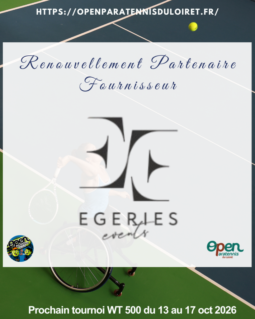 L’Open Paratennis du Loiret 👨‍🦽🎾👩‍🦽‍➡️a le plaisir de vous informer qu’Égéries Events, partenaire Fournisseur, continue l’aventure avec nous en 2026