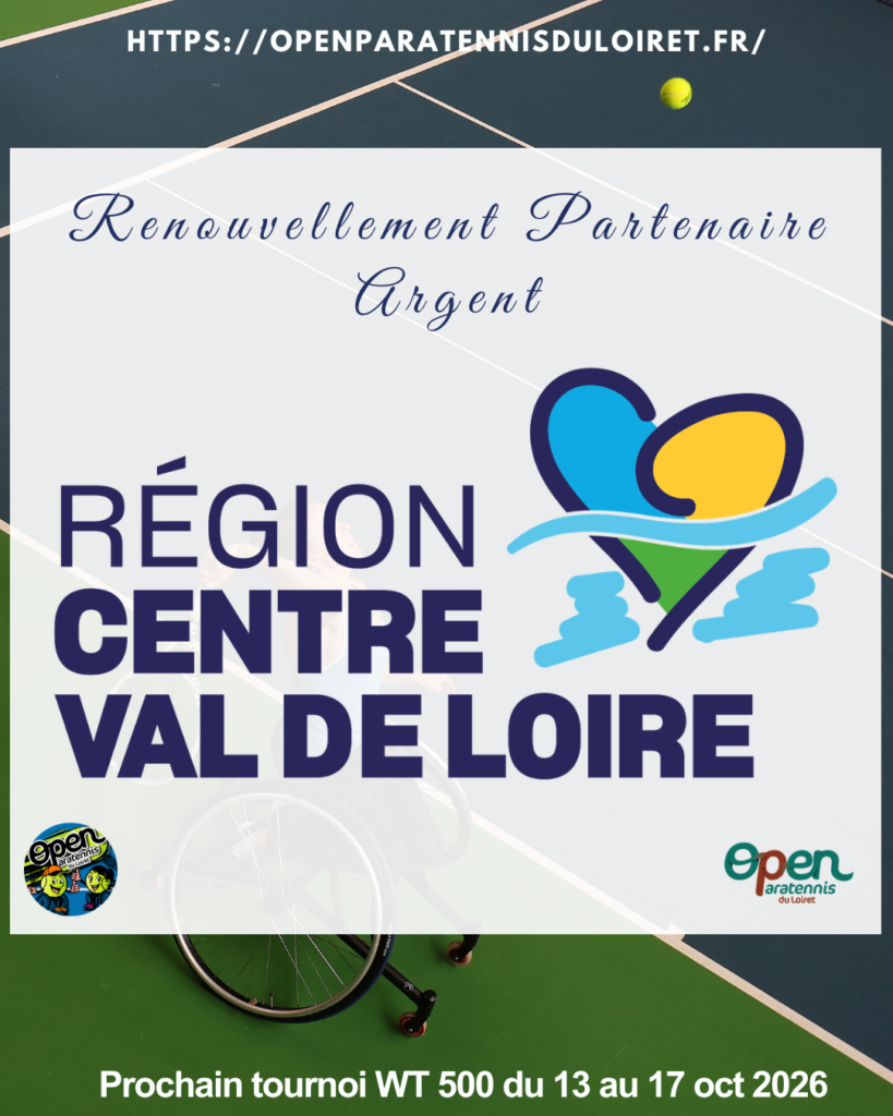 La Région Centre Val de Loire vient de renouveler son partenariat avec l’Open Paratennis du Loiret 👨🦽🎾👩🦽➡️ pour 2026 en tant que partenaire Argent